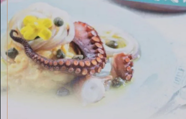 - Ψητό χταπόδι με φάβα Σαντορίνης, συνοδευόμενο από φρέσκα λαχανικά και ελαιόλαδο πρώτης πίεσης
