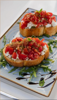 - Bruschetta με σολωμό ή μεσογειακές επιλογές