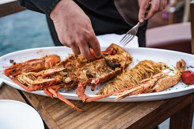 The cuisine at Ammoudi Fish Restaurant is based on daily fresh fish and seafood delivered directly by local fishermen. Highlights of the menu include juicy grilled octopus, crispy fried or grilled calamari, mussels in white wine sauce, as well as fresh lobster and seafood risotto with shrimp, squid, and mussels. The fresh catch of the day is prepared in various ways, such as grilled or pan-fried, using extra virgin Greek olive oil, lemon, and aromatic herbs.