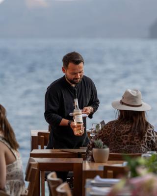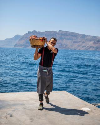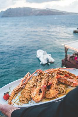 Ammoudi Fish Restaurant in Oia, Santorini is a culinary paradise for lovers of fresh seafood and Greek Mediterranean cuisine. It is located at the picturesque port of Ammoudi, offering a unique view of the deep blue Aegean Sea and the enchanting sunset.