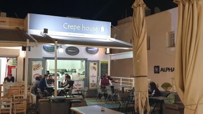 Η κρεπερί Crepe House είναι το ιδανικό σημείο για πρωινό, brunch, απογευματινό σνακ ή βραδινή λιχουδιά μετά τη βόλτα στα σοκάκια στα Φηρά. Ανοιχτή όλο το 24ωρο, η Crepe House υπόσχεται γεύσεις που θα ικανοποιήσουν κάθε επισκέπτη που θέλει μια γρήγορη, ποιοτική επιλογή φαγητού στη Σαντορίνη.