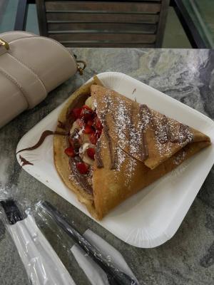 Γλυκές κρέπες με σοκολάτα, Nutella, φράουλα, μπανάνα, καραμέλα, μπισκότο και φρέσκα φρούτα.