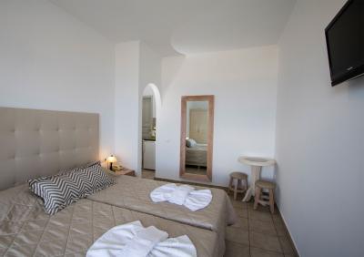 If you are looking for rooms for rent in Firostefani, Erato Apartments stand out for their cleanliness, excellent service, and breathtaking views of the Caldera. The fully equipped rooms are ideal for couples, families, and travelers who want to enjoy their stay in Santorini with comfort and style.